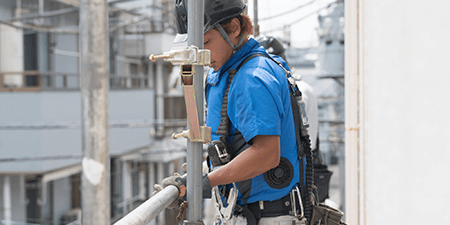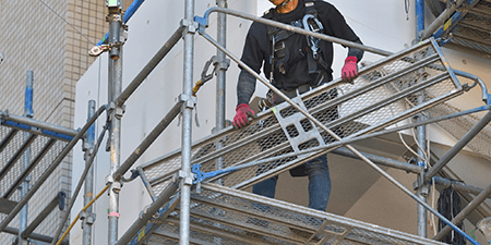 足場工事とは、建築現場など高所で作業をする際に、足元を支える足場の工事のこと。